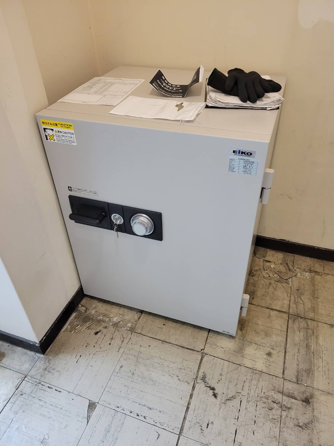 引き取りが終わったので、新しい金庫の据え付けに移りましたが、