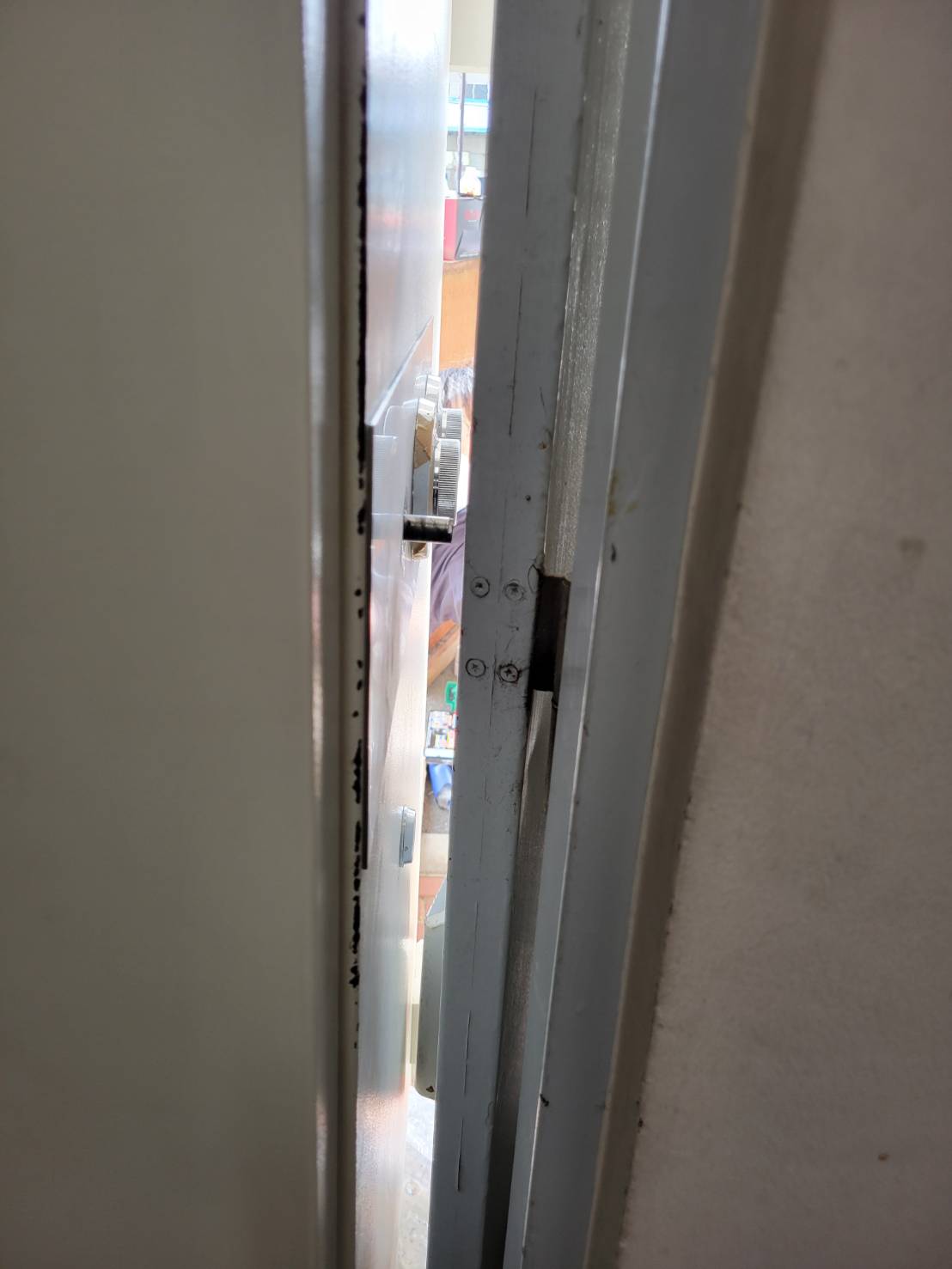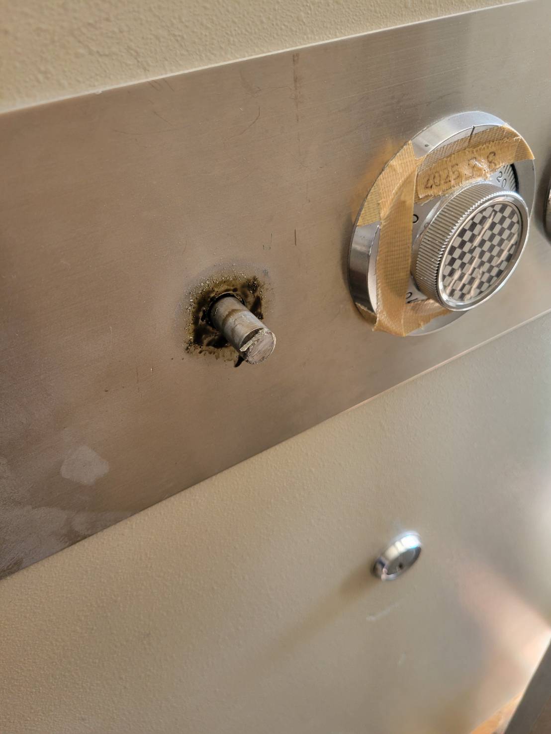 扉を通る際、金庫のハンドル部分が当たってしまったため、ハンドルをグラインダーで切断します。