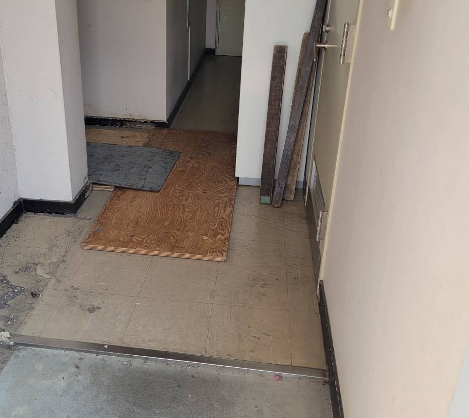 運び出す途中、モールがあったため、小さい板と鉄板を敷いて超えます。