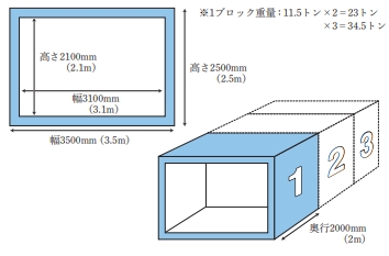 重量/11.5t ※1ブロック重量:11.5トン×2=23トン ×3=34.5トン