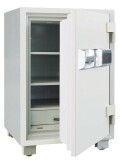 業務用耐火金庫のETSシリーズ。 ETSシリーズはプッシュタイプになります。 暗証番号を入力し、キーを差し込み廻すだけの簡単なシステムです。 暗証番号は4~16桁で入力できます。