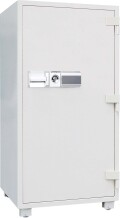 業務用耐火金庫のDDEシリーズ。 DDEシリーズはプッシュタイプになります。 暗証番号を入力し、簡単なテンキー操作とシリンダーキーの2重ロックのシステムです。 暗証番号4~16桁で入力できます。